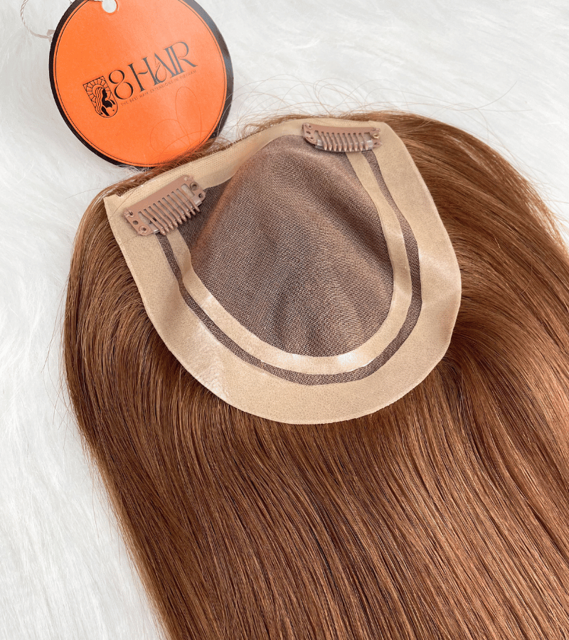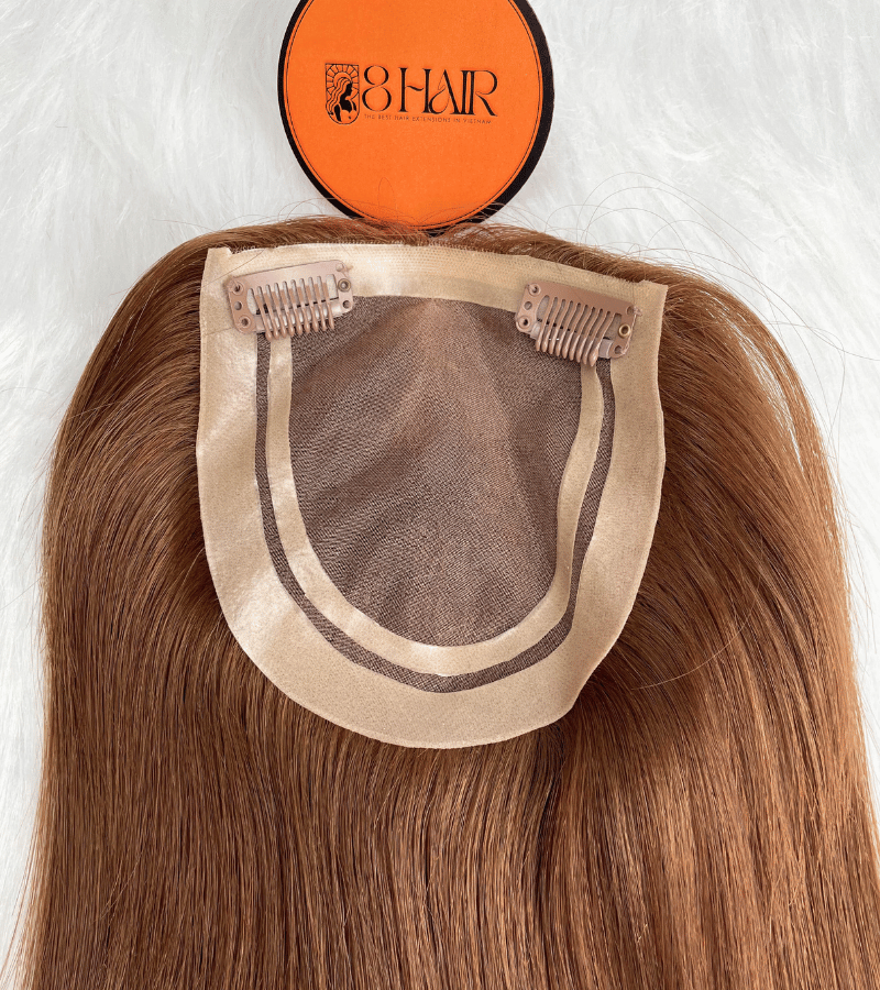 5×5 Inches Mono With PU Coated #8 Color 130% density Hair Topper